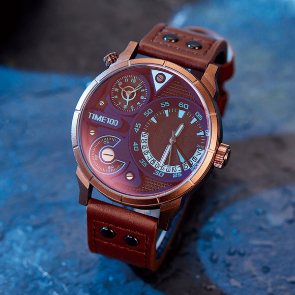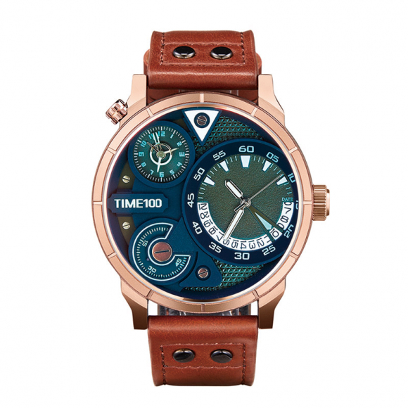 时光一百(TIME100)男表个性炫彩三芯搭配石英男士手表 新款爆款
